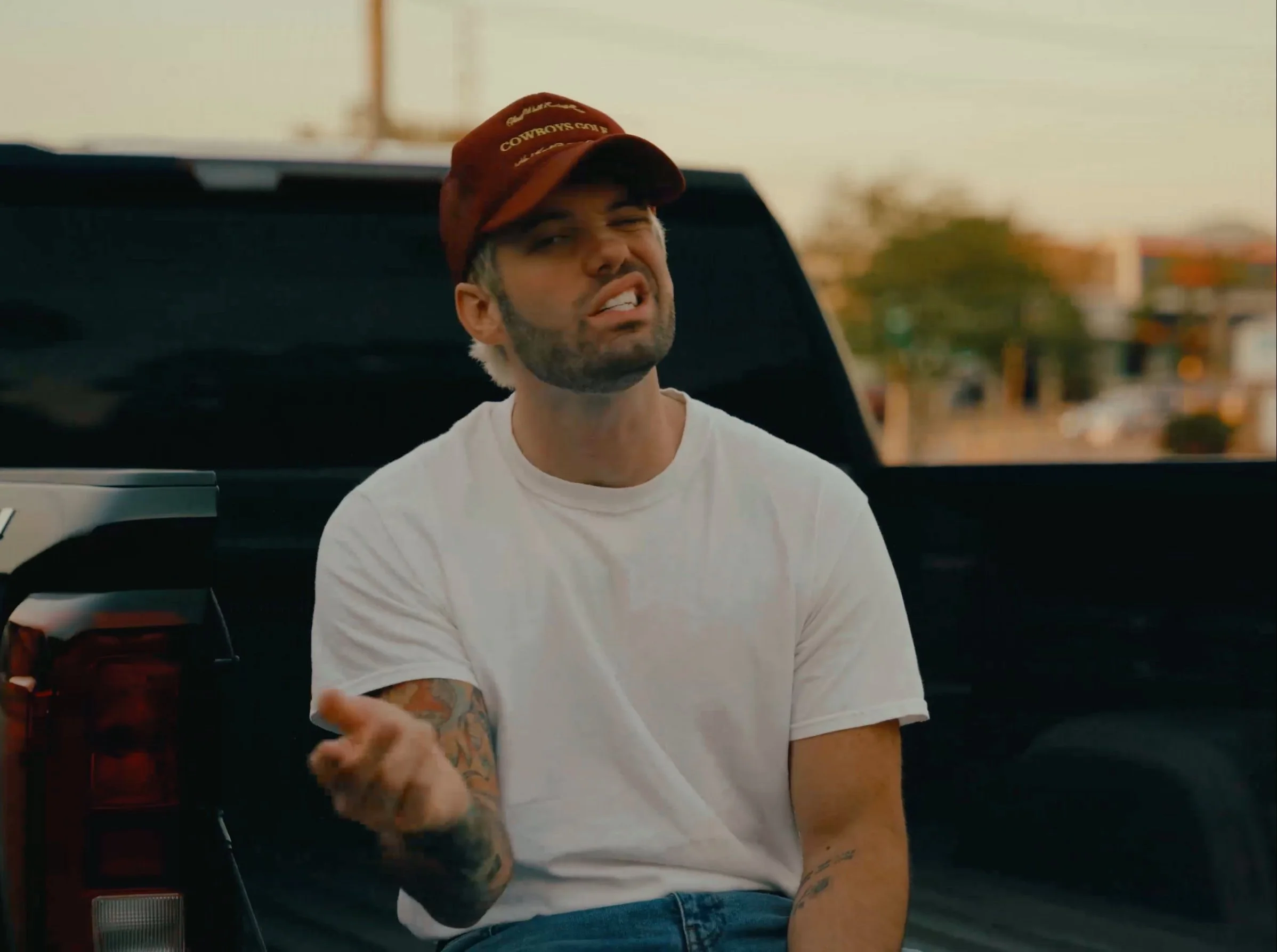 Gomey wearing Modelli di Ruolo Cowboys Golf Trucker Cap in Wasting Time Wasted by Gomey Music Video.